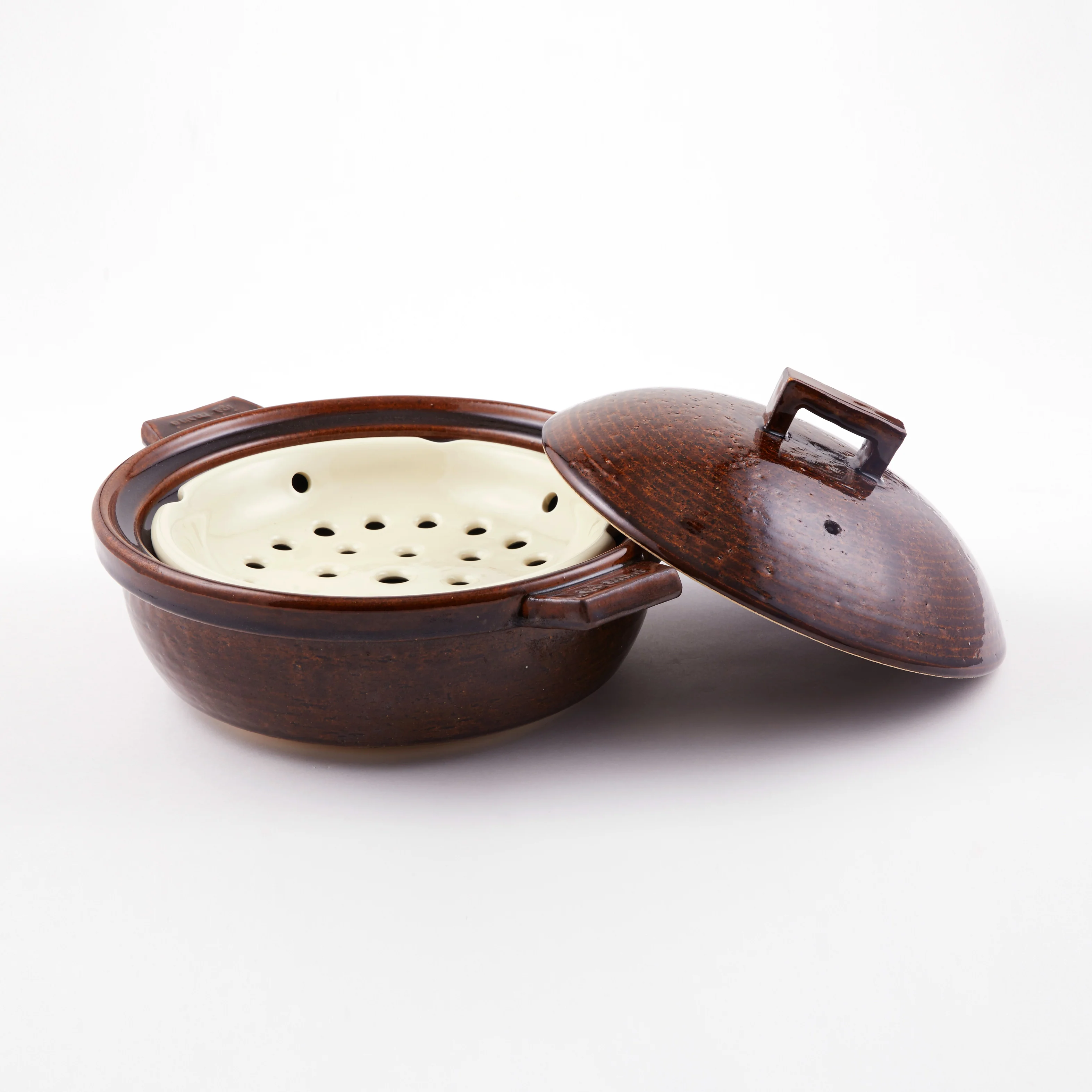 Iga region, where this donabe is made, used to be the bed of Lake Biwa about 4 million years ago. The clay from this region is naturally highly heat-resistant and has been used for open-flame cooking for many hundreds of years. This clay consists of a high level of pre-historic fossilized microorganisms that leave the clay porous when fired. The porous body gives the donabe remarkable heat-retention ability. The donabe gradually builds the heat when itâs heated, then it cools down very slowly after the heat is turned off. This, along with the glaze that promotes the far infrared rays (FIR â the same effect as how the glowing charcoal cook ingredients without direct flame) when itâs heated, allow the donabe to produce a gentle, steady heat that penetrates to the core of each ingredient. The effect is ingredients are cooked evenly with all the flavors sealed inside.
