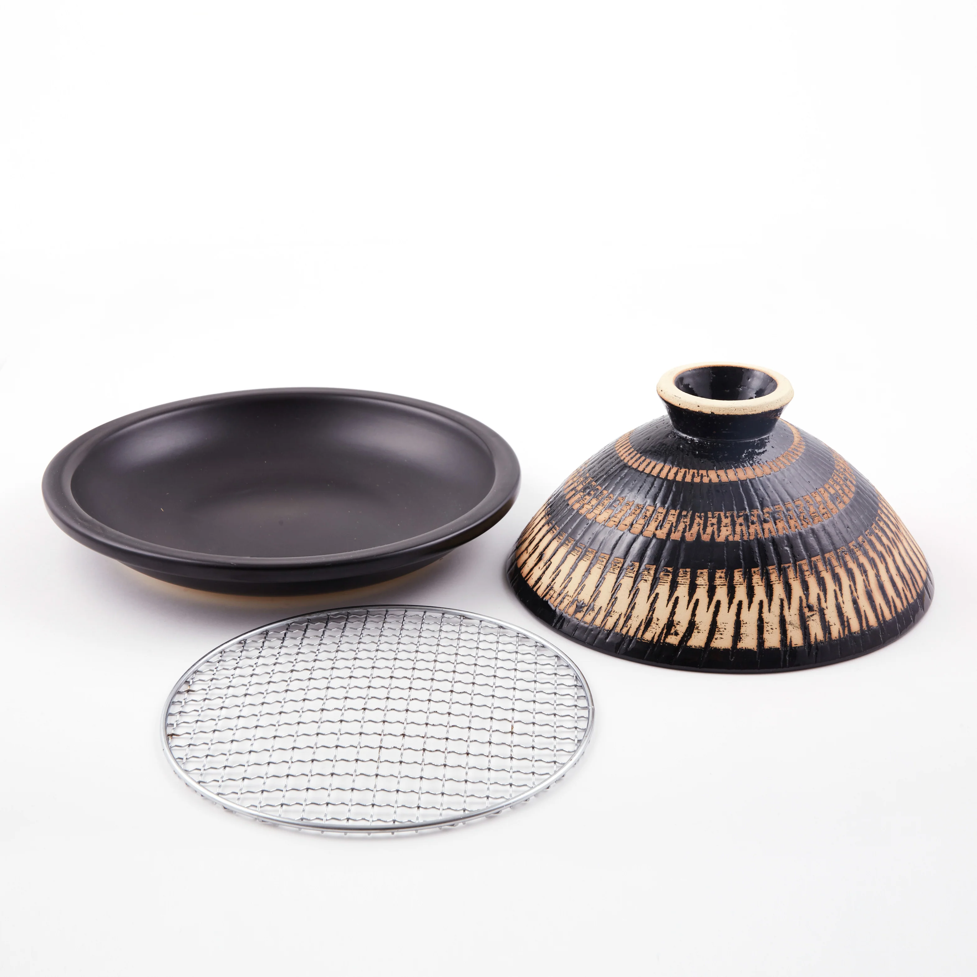 You can cook with or without the grate or lid. With the lid on, the effects of the far-infrared rays (FIR) and the porous clay cooks evenly to the core of the food, and seals all the good flavors inside. The meat and fish can become succulent just like they are grilled over charcoal. Even after turning off the heat, Fukkura-san retains the heat very well and the ingredients continue to cook with the carry-over heat for the next 5 - 10 minutes. Grate can be set into the skillet, and you can roast ingredients over stove-top. The skillet of Fukkura-san can also be heated when itâs empty (with or without the lid on), unlike other kinds of donabe.