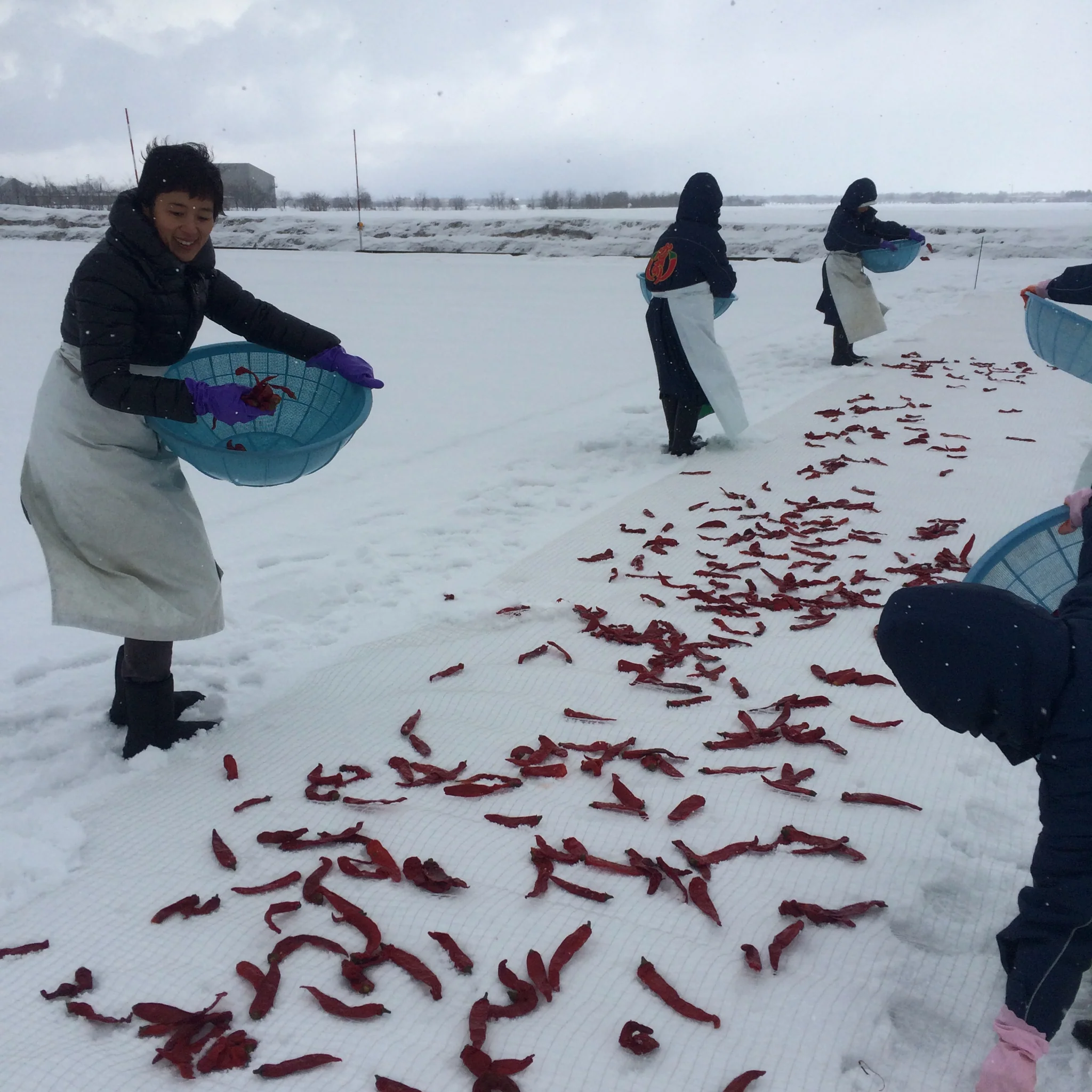 The sight of the spreading of peppers over the snow is something breathtaking. This process will remove the excess bitterness and saltiness from the pepper while increasing the natural sweetness. Snow-bathed peppers are then mixed with yuzu rind, koji, and additional salt, and aged for at least 3 years.